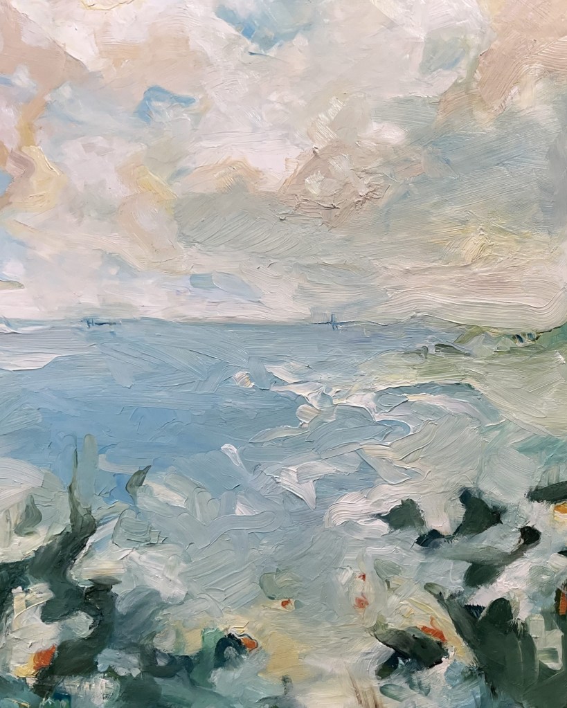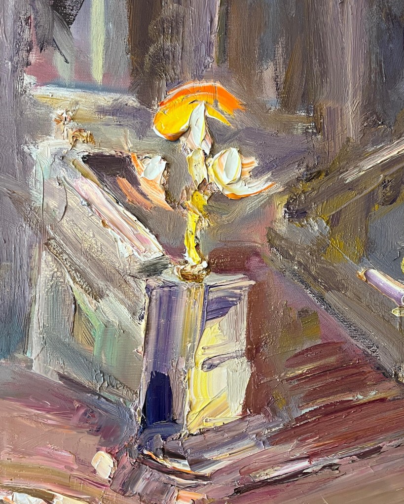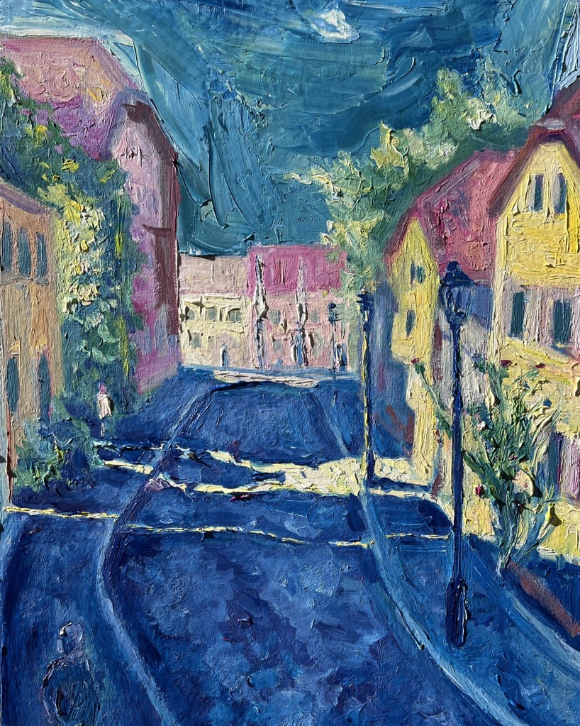 Der Ausstellung widmet er die Serie (Stadt-)Landschaften. In seinen Arbeiten verbinden sich Eindrücke von Spaziergängen und Reisen mit Malerei. Ausgangspunkt sind Fotografien, die zunächst skizzenhaft vorbereitet und anschließend in Ölfarben übertragen wurde. Die Besonderheit der Technik mit Spachtel und Pinsel liegt im Dialog zwischen Intuition und gestalterischer Kontrolle – natürliche Formen nachzuahmen und menschengemachte Strukturen zu gestalten. Alltägliche Landschaften erscheinen so in einem anderen Licht. Seine künstlerische Perspektive lädt dazu ein, gewohnte Wege neu zu betrachten. Damit entstehen Bildwelten, die vertraute Orte in erzählerische Landschaften verwandeln.